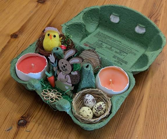 Zudem bieten wir täglich das Bemalen von Gipsfiguren sowie das Basteln und Gestalten von Osterdekorationen an.