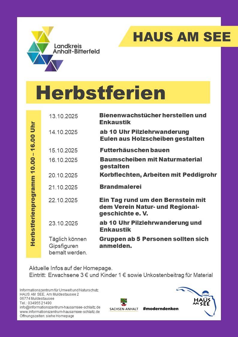 Die Wanderungen sind für die ganze Familie geeignet und starten um 10.00 Uhr vor dem HAUS AM SEE. Wetterfeste Kleidung und festes Schuhwerk nicht vergessen!